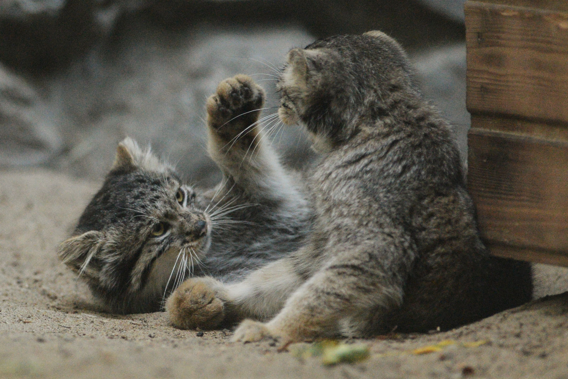 - Детёныши манула в вольере