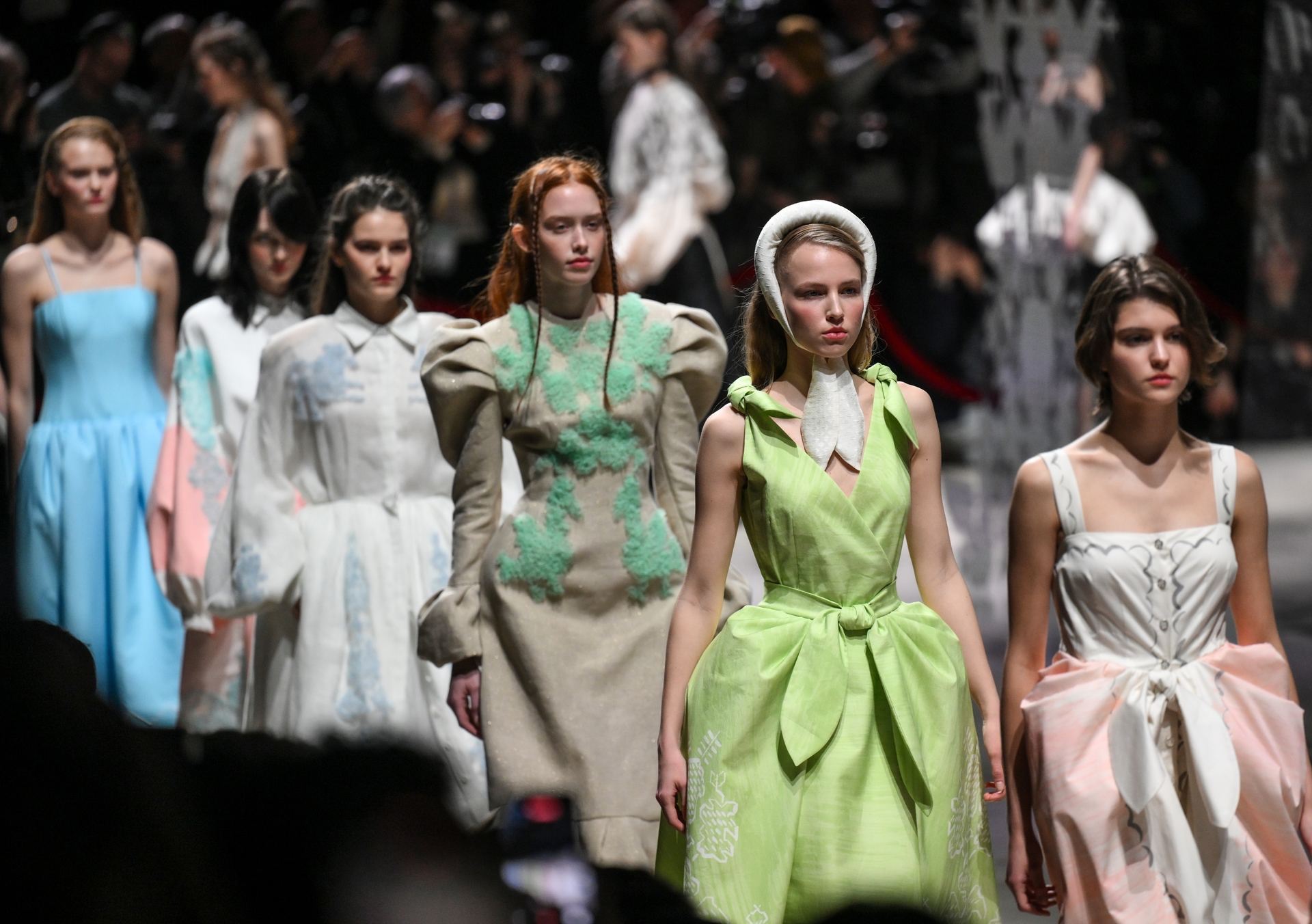 - Модели на показе одежды дизайнера Алёны Ахмадуллиной на VI Московской неделе моды в ЦВЗ “Манеж” в Москве