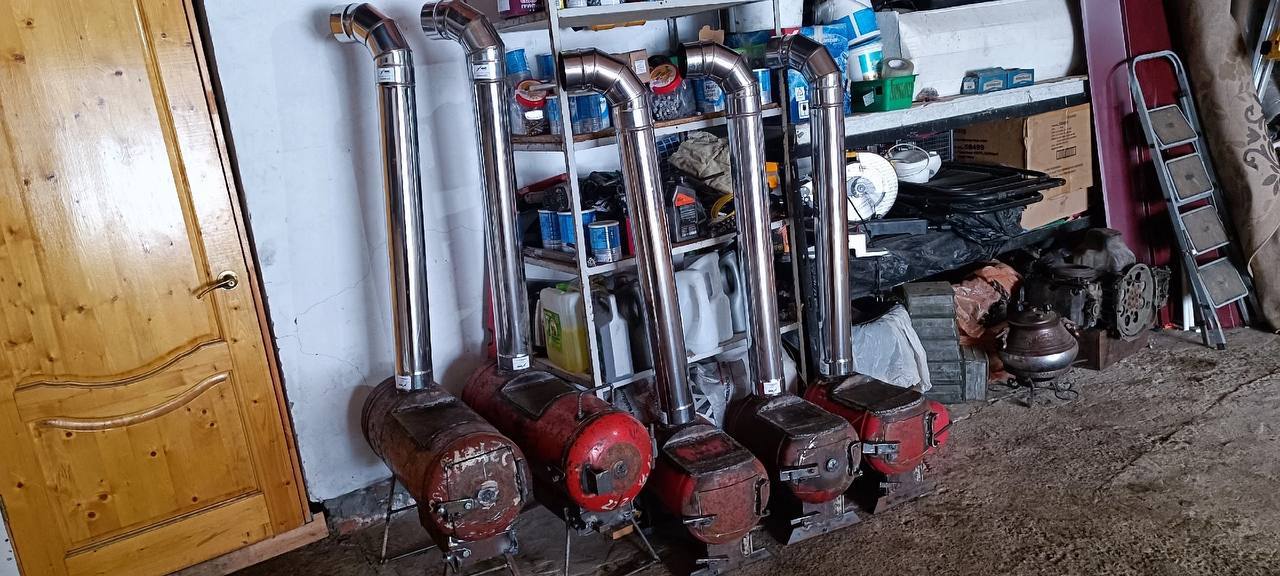«Мы их делаем по возможности с зольником, чтобы была хорошая тяга для горения и чтобы золу можно было удалять, — делится он. — Если делаем печку из нового листового металла, то прилично времени отнимает разметка, резка болгаркой и сварка, особенно мелких деталей. А если из газовых баллонов, то тут самое сложное — снять латунный вентиль, потому что он обычно очень сильно затянут. Потом баллон заливается водой, чтобы смыть пропан и обезопаситься от возгорания. Далее сверлится отверстие — и можно разрезать баллон по разметке, подбирать детали из листового металла».