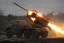 - Работа РСЗО «Град» 40-й отдельной гвардейской бригады морской пехоты группировки войск «Центр»