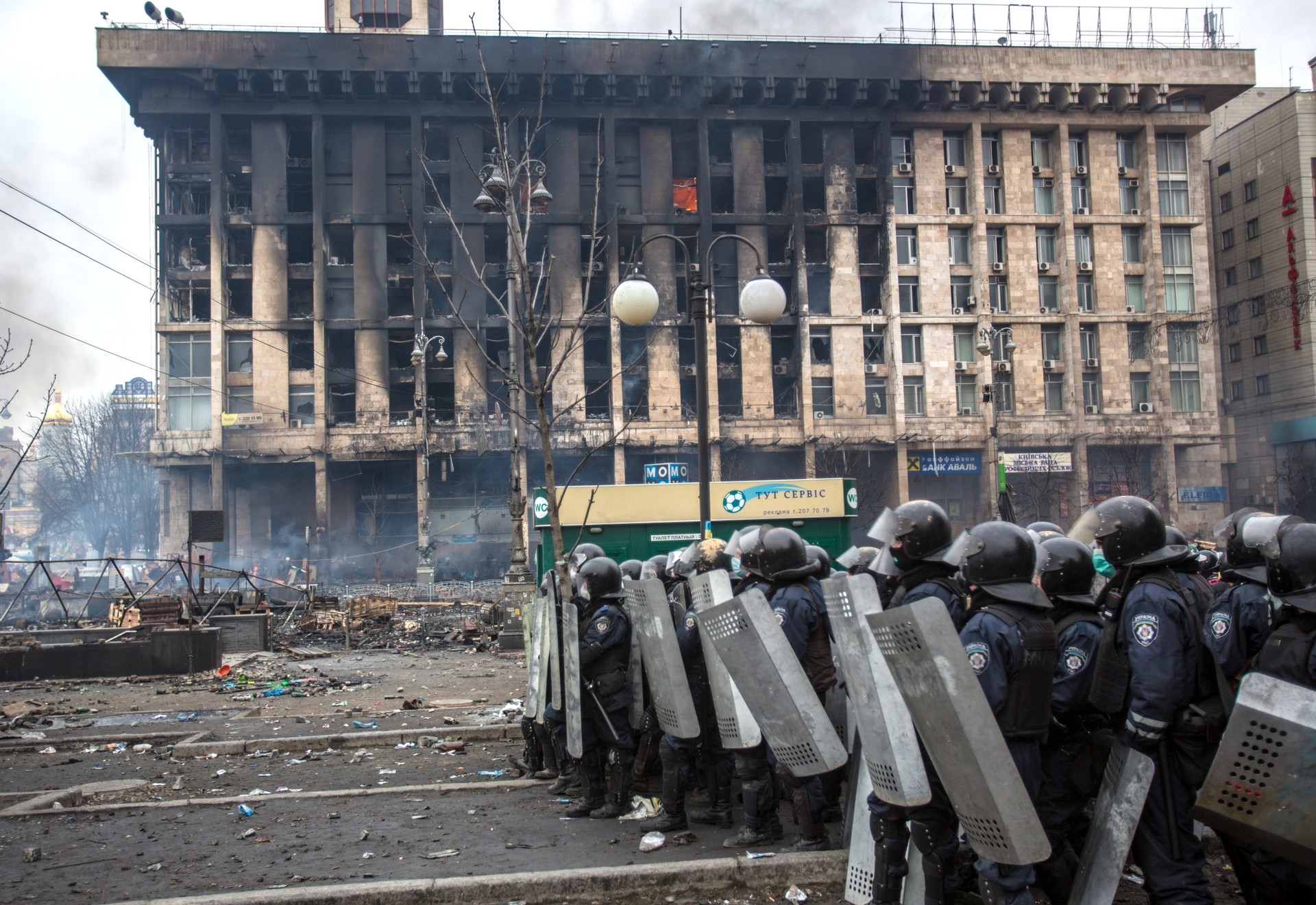 - Центр Киева в период ожесточённых столкновений между протестующими и силовиками
