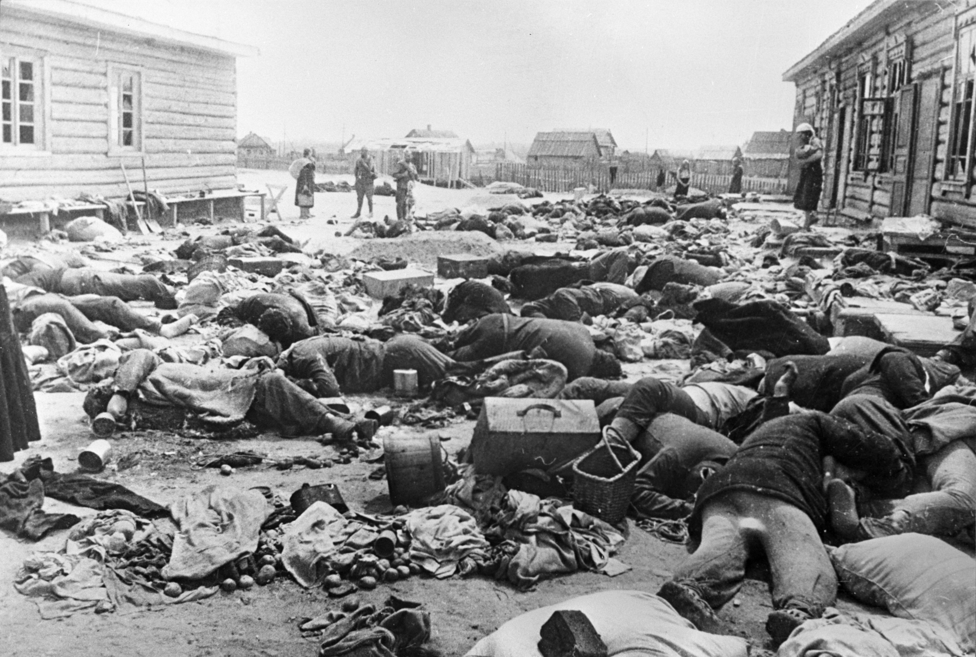 - Расправа с гражданским населением в Борисове. Тела местных жителей, убитых немцами при отступлении
