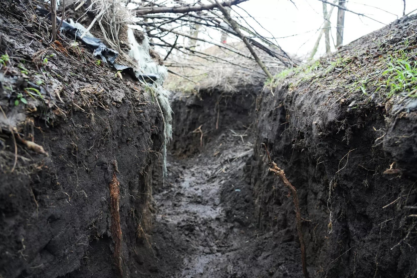 Ещё одним важнейшим элементом современной полевой фортификации стала защита от поражения малоразмерными БПЛА. Для этого над окопом военнослужащие должны натягивать стеклоткань, а поверх неё — сетку-рабицу, говорит собеседник RT.