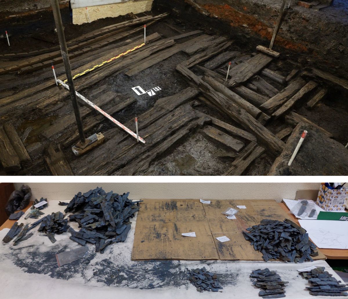 Впрочем, новые данные были получены уже во время спасательных раскопок 2024 года в районе Воскресенской улицы. Как рассказали археологи, культурный слой достигал 1,7 м, работы велись на площади 200 кв. м. Под настилом из досок, плах и балок учёные и обнаружили фрагменты старинных ножей, некоторые из них были сплавлены воедино. И место находки, и следы воздействия высоких температур говорят о том, что ножи находились в гостином дворе в момент пожара.