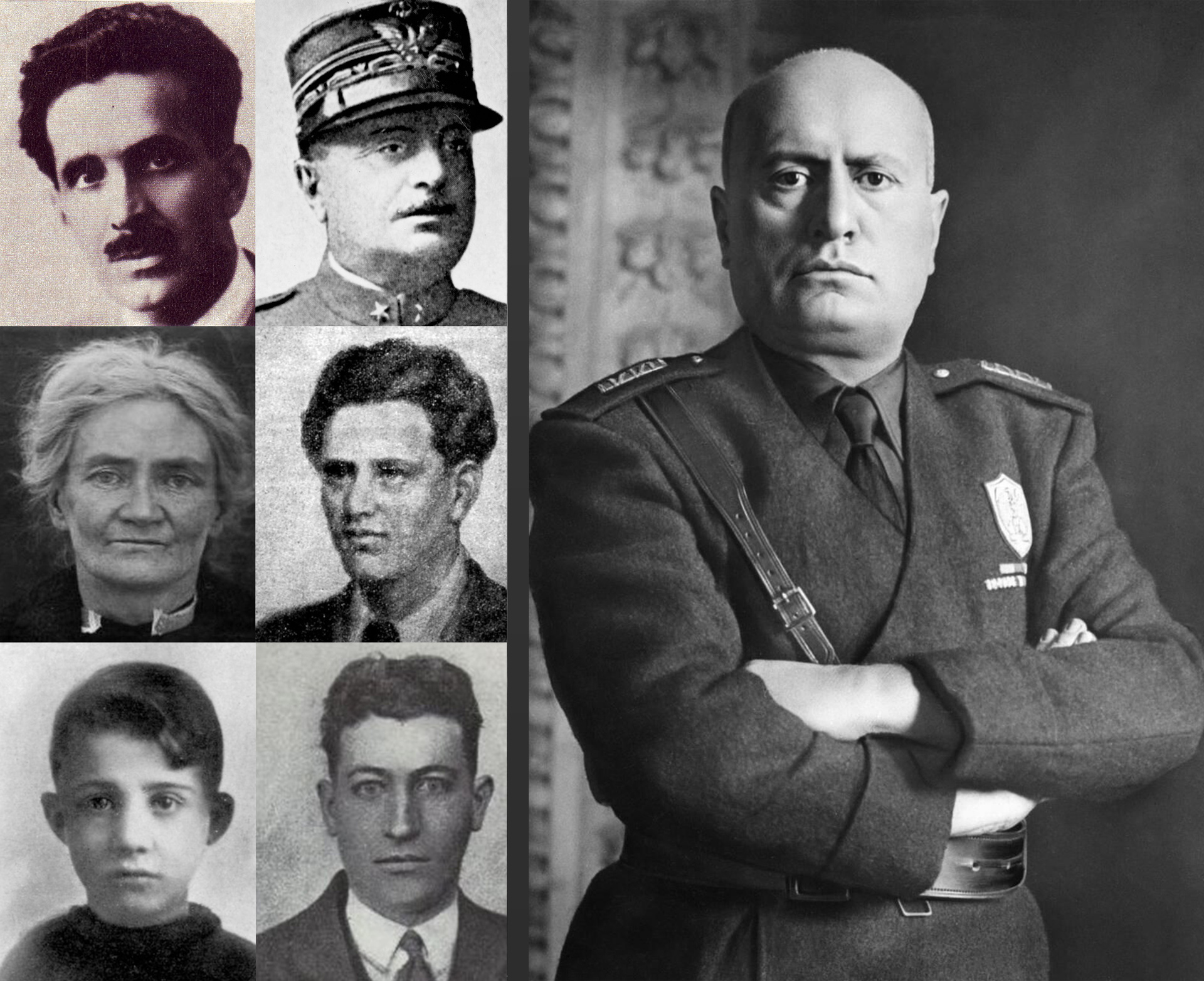- Бенито Муссолини и покушавшиеся на него люди: Тито Дзанибони, Луиджи Капелло, Вайолет Гибсон, Джино Лучетти, Антео Дзамбони, Микеле Ширру