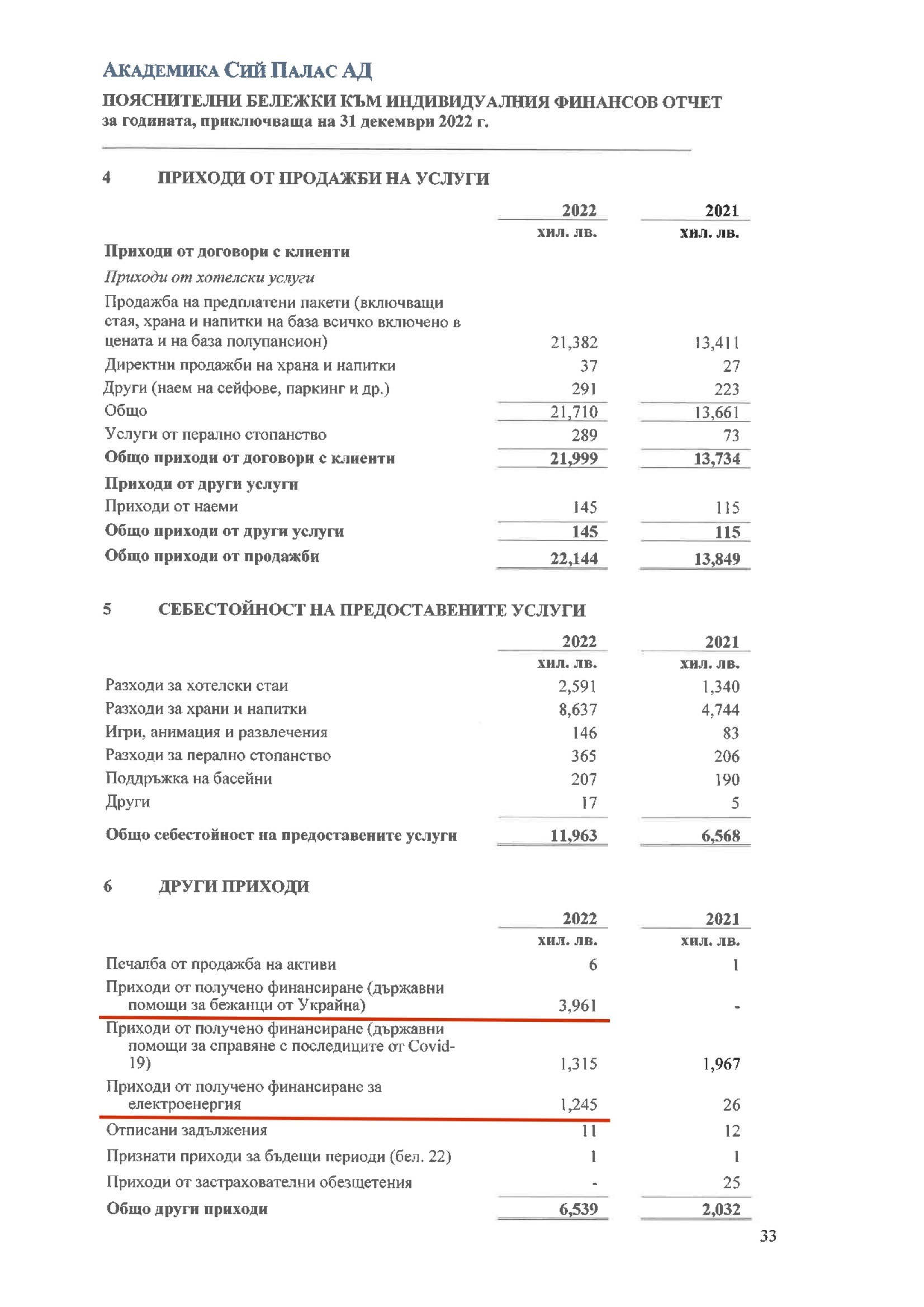 Вторая гостиница, Melia Grand Hermitage, оказалась в такой же ситуации. Её управляющая компания «Съни Травел» получила в 2022 году 7,62 млн левов ($4,25 млн) от государства, гласит отчёт. Это составило 32% от всех поступлений гостиницы и помогло ей закончить год с чистой прибылью 6,55 млн левов.