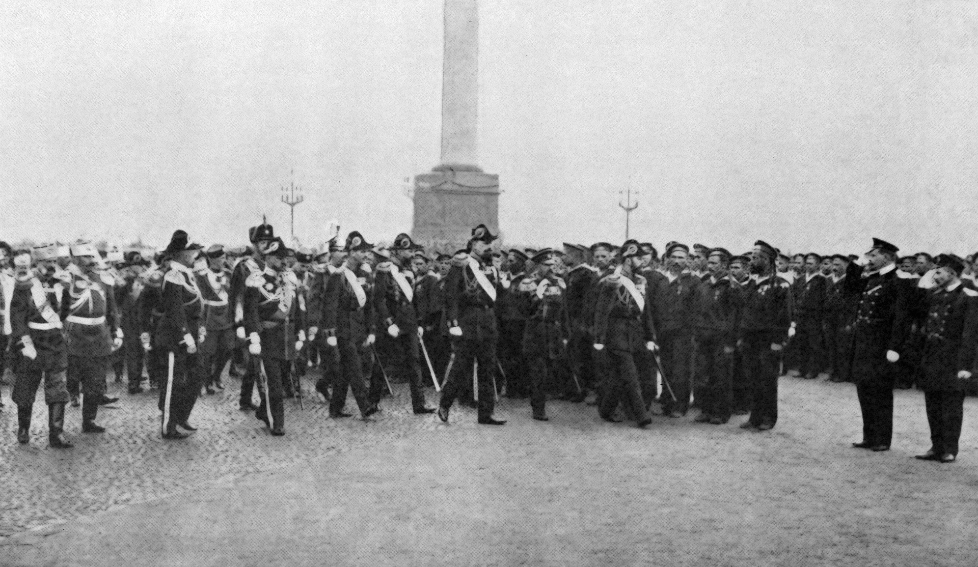 - Император России Николай II приветствует экипажи крейсера “Варяг” и канонерской лодки “Кореец”на Дворцовой площади во время русско-японской войны 1904 – 1905 г. г
