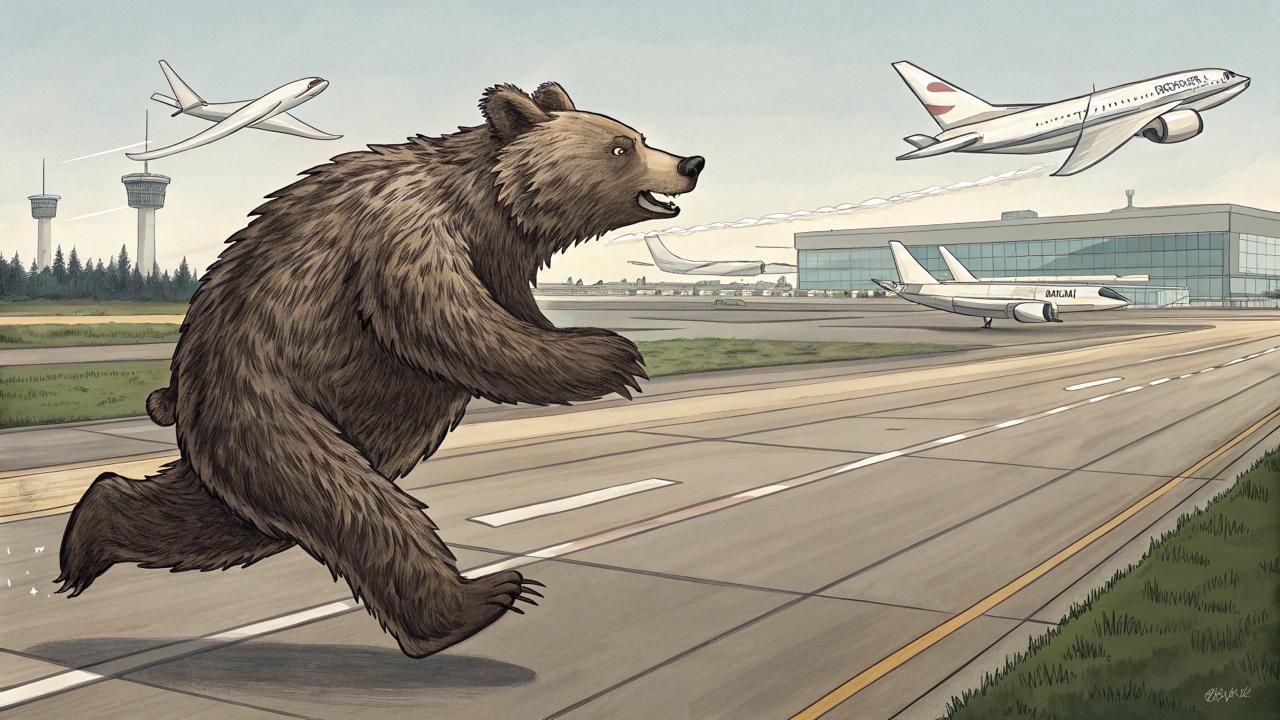 К слову о медведях. Из первой подборки мы уже поняли, что нейросеть испытывает определённые трудности с этими животными, оценивая их способности на уровне человеческих. На этот раз по запросу «медведь бегает по взлётно-посадочной полосе аэропорта» мы получили куда-то спешащего на своих двоих косолапого, а вишенкой на ИИ-торте стали хаотично летающие в небе самолёты, кажется, размахивающие крыльями, аки птицы.