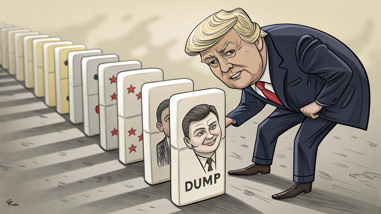 И снова о политике. Такой результат ИИ выдал по запросу «Трамп роняет домино, на котором изображён Зеленский». В целом похоже, но с английского слово dump переводится как «помойка». Откуда оно взялось на домино с Зеленским — спросите у нейросети.