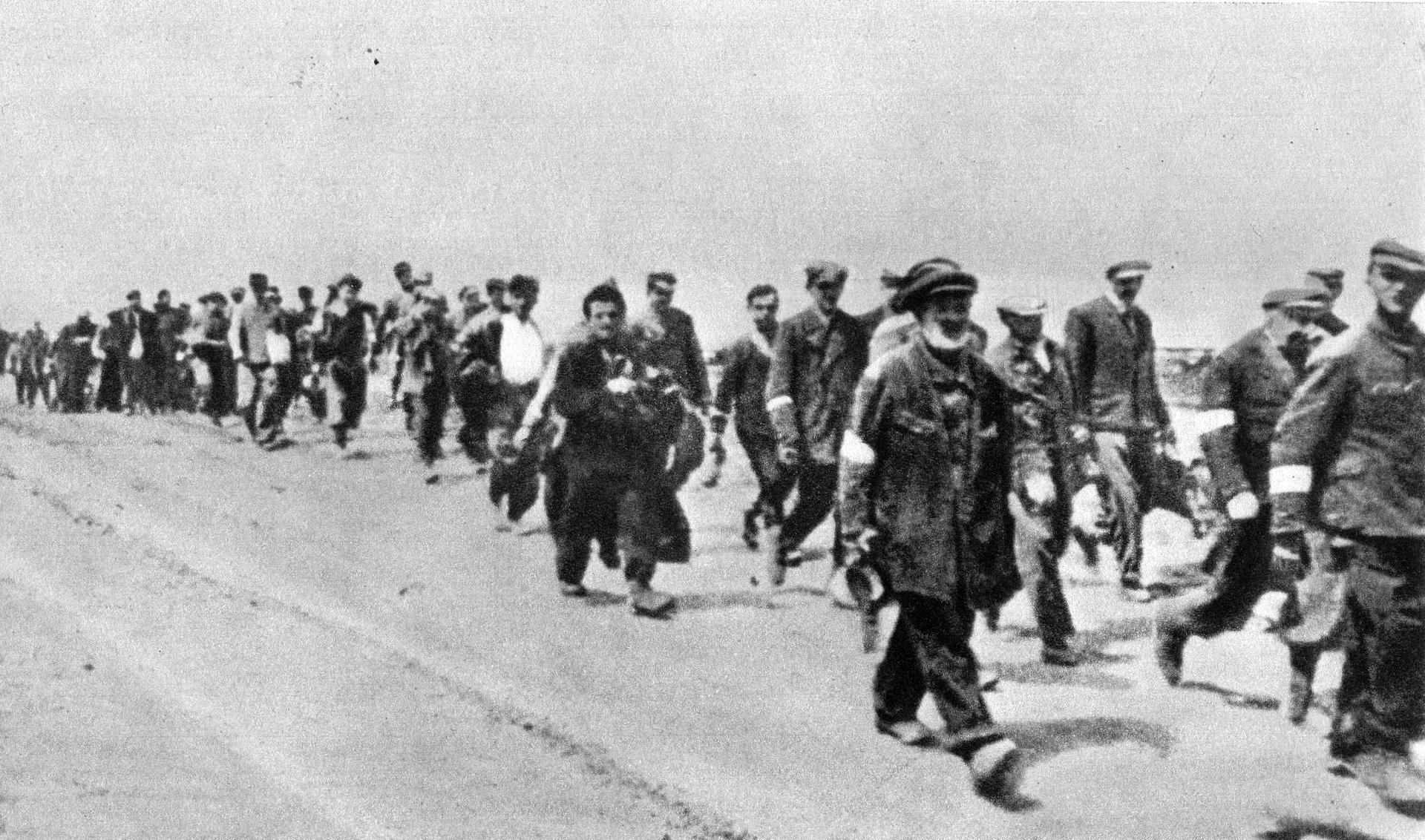 - Группа евреев идёт в лагерь смерти Белжец, построенный для убийства евреев Люблина и Львова