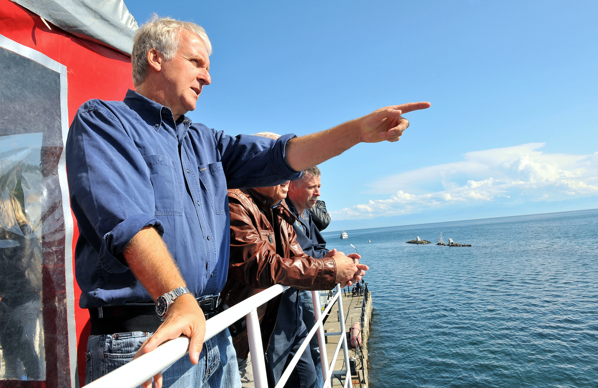 - Американский кинорежиссер Джеймс Кэмерон в поселке Листвянка на озере Байкал, где базируются глубоководные аппараты “Мир-1” и “Мир-2”.