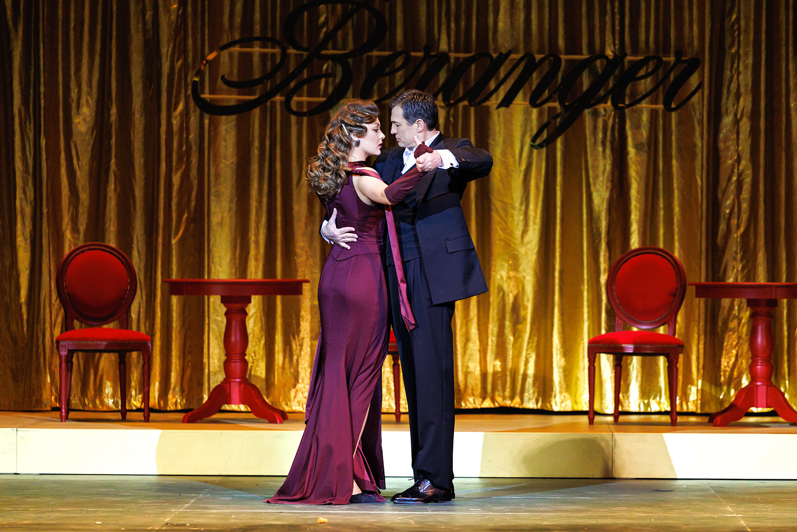 • Сцена из спектакля «Проект инженера Гарина». Андрей Чернышов в роли Петра Гарина и Полина Лоран в роли Зои Монроз