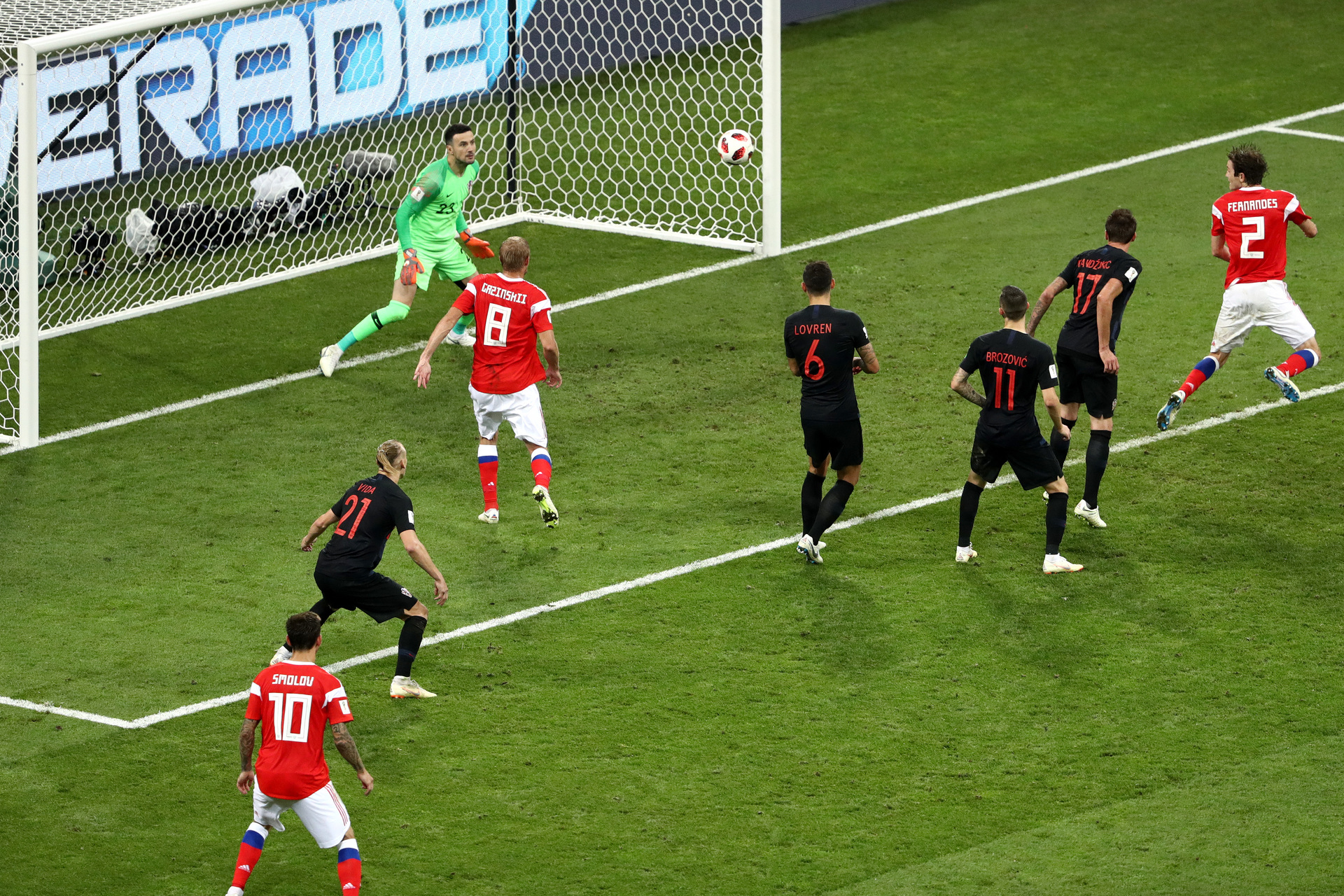 - Марио Фернандес поражает ворота сборной Хорватии на ЧМ по футболу в России