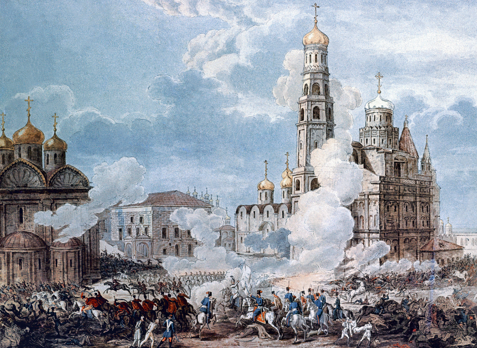 - Художник Иван Алексеевич Иванов (1780—1848). “Изгнание из Москвы неприятеля отрядом легкой кавалерии под командованием генерал-майора Иловайского. Октября 10-го 1812 года”